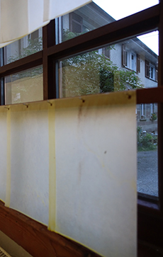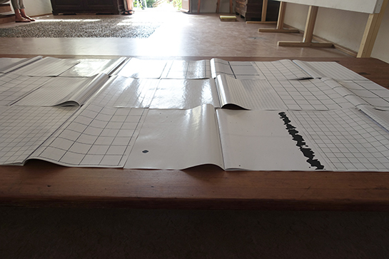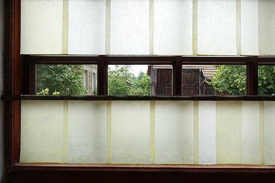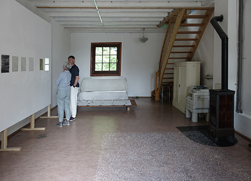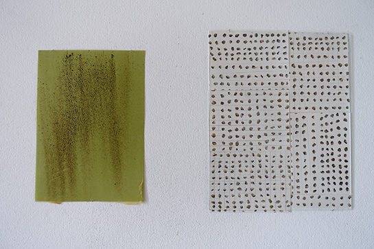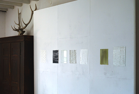 Maria Tackmann Durchscheinen und Leuchten 7.7.2019 - 28.7.2019 Eröffnung Sonntag 7.7.2019 ab 15:00 Uhr in Anwesenheit der Künstlerin Öffnungszeiten: Samstag, Sonntag jeweils 13-17h, oder nach Absprache. Eintritt frei Gastkünstlerin am Wolkenhof Als Gastkünstlerin verbrachte Maria Tackmann den Monat Juni am Wolkenhof. Die deutsch-schweizerische Künstlerin interessiert sich für Materialien und Strukturen, die normalerweise unterhalb unserer Wahrnehmungsschwelle bleiben: Strassenbeläge, Erosionsspuren, Zurückgebliebenes, Papier, Reste von Baumaterialien, Webmuster ... Sie legt daraus Sammlungen scheinbar belangloser Objekte an und bringt sie in ihren Installationen in neue Beziehungsmuster: Das Atelier ist der Wohn- und Arbeitsraum, in dem sie ihre Beobachtungen anordnet. Die im Hof gesammelten Steinchen verwandeln sich als Auslegeordnung auf dem Atelierboden zum Teppich. Zeichnungen an der Wand greifen dieses Punktmuster auf und variieren lineare Strukturen. Auf dem Tisch vor dem Sofa liegen Kopier-Experiemente aus, die auf einem in Murrhardt erstandenen Second-Hand-Kopiergerät entstanden sind. Wenn man ein Blatt Karopapier oft genug vergrössert, zerfallen die Linien zu Punkten, ähnlich den Steinchen am Boden. Der Staub, der von alten Dachschindeln gebürstet wird, bildet einen Kreis am Boden. Die Papiere im Fenster wurden mit zweierlei Bienenwachs vom Wolkenhof getränkt. Sie thematisieren das Spiel des Lichts, das Durchscheinen und Leuchten. Artist in Residence The German-Swiss artist Maria Tackmann spent the month of June 2019 as artist in residence of the Wolkenhof. Maria Tackmann is interested in materials and structures, which usually remain below the level of perception: road surfaces, traces of erosion, remnants, waste paper, leftovers of construction materials, waving patterns… She assembles samples of seemingly insignificant objects and arranges them in her installations to a new relational order. The Wolkenhof studio room becomes the living and working space, where she puts her observations together. Loose chippings from the road outside turn into a carpet like dot pattern at the studio floor. Drawings refer to this dot pattern and also to linear structures from the outside environment. The low coffee table displays a series of Xerox copy experiments performed on a second hand copy machine she acquired during her stay in Murrhardt. If you copy a grid paper many times with the zoom function lines will decompose into dots like the pebble pattern at the floor. Used shingles from an old roof are cleaned with a brush and the forms a circle at the floor. the paper sheets in the window were soaked in beeswax from the Wolkenhof beehives. They emphasize the play of light, it’s shining through and glowing. Maria Tackmann 1982* Wattenwil, Schweiz Fachklasse Grafik Schule für Gestaltung Bern/Biel, Staatliche Akademie der Bildenden Künste Karlsruhe, Prof. Helmut Dorner und Prof. Silvia Bächli, Meisterschülerin bei Prof. Silvia Bächli Einzelausstellungen: 2019 Diverse Materialien, Dimension variabel, Stiftung CCFA Karlsruhe 2018 tour autour, Betriebswerk Heidelberg Zeichen, Rudolf-Scharpf-Galerie, Ludwigshafen 2016 Pförtnerhäuschen, Alter Schlachthof Karlsruhe Mezzanin, Einraumhaus c/o Mannheim 2014 Parterre, Kunsthaus L6, Freiburg 2012 Am Ende genügt ein Fach, Galerie Meyer Riegger, Karlsruhe 2011 ziemlich regelmässig, Konsumat, Pforzheim Gruppenausstellungen: 2018 Im Schwarm der Objekte, Galerie der Cité Internationale des Arts, Paris surface mouillée, Cité Internationale des Arts, Paris 2017 Für die Ewigkeit - Archivarische Strategien in der Kunst, Kunstraum Alexander Bürkle, Freiburg Green room, PIK Projektraum im Kunstwerk, Köln; Arrazzo, (mit Johanna Broziat) Atelierhaus im E-Werk, Freiburg; sans titre (paramètres composés), Stadtgalerie Bern 2016 Cantonale Berne/Jura, Wie Tag und Nacht, Kunstmuseum Thun; Gastmahl, Museum der Brotkultur Ulm; Regionale 17, Encoding the urban, La Kunsthalle Mulhouse; 4 Säulen im Westen, Karlsruhe; Deltabeben, regionale 2016, Kunstverein Mannheim 2015 Mobiles Museum, Pforzheim; Höhenluft #10, Kunstverein Wilhelmshöhe, Ettlingen; BERN BABY BERN, Kunstmuseum Thun 2013 Cantonale Berne/Jura, Kunstmuseum Thun und Stadtgalerie Bern; Top13, Kunstverein Freiburg 2012 Höhenluft #2, Kunstverein Wilhelmshöhe, Ettlingen 2011 Swiss Art Awards, Basel 2010 Regionale 11, Kunsthaus Baselland; Purple rain, Galerie Iris Kadel, Karlsruhe Preise, Förderungen und Stipendien: 2018 Cité Internationale des Arts, Paris 2016 Publikationsförderung, Ministerium für Wissenschaft, Forschung und Kunst BW 2014 Kunstpreis Alexander Bürkle, Freiburg 2013 Reisestipendium (Athen) der Landesgraduiertenförderung Baden-Württemberg 2010 Preis der Staatlichen Akademie der Bildenden Künste Karlsruhe |