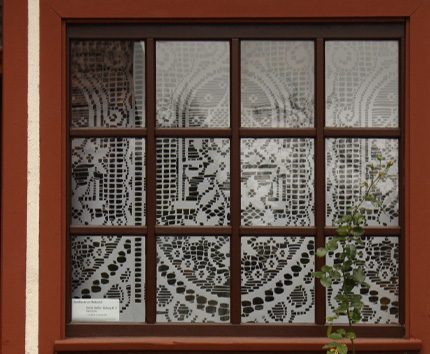 Patrick Steffen. Vorhang Nr. 3 Die Papierschnitte von Patrick Steffen spielen mit einem wohlbekannten Motiv, einem Häkelvorhang mit Blumenmuster. Als Vorlage diente ein kleiner, billiger Fertigvorhang, wie er in unzähligen Wohnzimmern und Küchen hängt und die Sicht versperrt, von aussen nach innen und umgekehrt. Mit der vielfachen Vergrösserung des Musters wird der ursprüngliche Zweck des Sichtschutzes ad absurdum geführt. Die Löcher erlauben Ein- und Ausblick. Der Vorhang - in seiner ursprünglichen Funktion eher ein Attribut des privaten Rückzugs - wird zum selbstbewussten Blickfang für einen öffentlichen Ort. Die Arbeit entstand ursprünglich für eine Ausstellung im Schaufenster der Dokumentationsstelle Basler Kunstschaffender. 11. Juli - 25. September 2010 www.patricksteffen.ch |