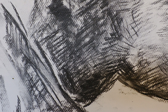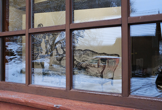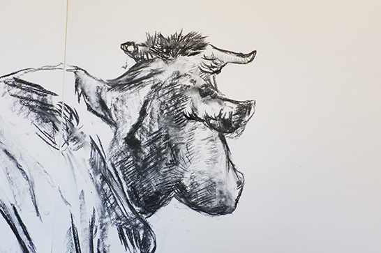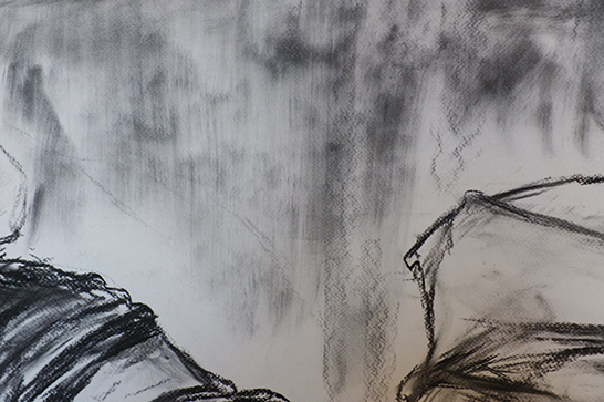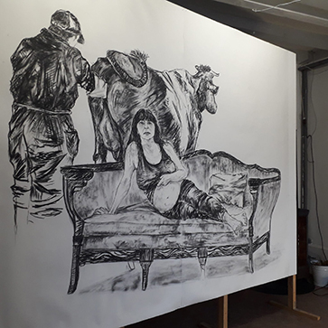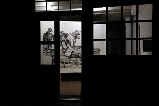 Ana Vujic M/Other 9. 1. bis 4. 3. 2022 Öffnungszeiten: Das Kunstfenster ist durchgehend zugänglich Kunst und Alltag sind für Ana Vujic nicht trennbar. Seit Jahren realisiert sie grossformatige Zeichnungen mit Kohle oder Tusche, welche sich um die sich ständig wandelnden Lebensbedingungen des Menschen drehen. Sie thematisieren Situationen des Umbruchs, die Fragilität des gesellschaftlichen Konstrukts und hinterfragen unsere Rolle als Individuum. Dabei bedient sich Ana Vujic einer figürlichen, vordergründig leicht zugänglichen Darstellungsweise. Doch es ist weniger ein Nachzeichnen realer, bereits gesehener Bilder. Vielmehr öffnet sie den Blick auf innere Bildwelten, die durch eine inhaltliche Abstraktion auch von gegensätzlichen Gefühlswelten erzählen. Mit der Zeichnung „M/Other“, die anlässlich der Ausstellung im Kunstfenster entsteht, rückt Ana Vujic die sich anbahnende eigene Mutterschaft in den Fokus. Die Gegenüberstellung einer schwangeren Frau mit der Besamung eines Tieres irritiert und polarisiert. Sie lenkt den Blick auf das Thema in unterschiedliche Richtungen: Einerseits wird dem natürlichen Zyklus ein gesellschaftlich konstruierter Optimierungsprozess gegenübergestellt. Andererseits wird die verherrlichende Darstellung der „weiblichen Natur“ und die damit oft einhergehende Reduzierung der Frau auf diese einzige Rolle kritisch hinterfragt. Ana Vujic *1981 in Serbien, lebt und arbeitet in BaselAna Vujic kam in jungen Jahren mit der Graffiti- und Streetartszene in Berührung, die ihre Faszination für künstlerische Eingriffe im öffentlichen Raum weckte. Als Autodidaktin konnte sie ihre grossformatigen Zeichnungen bereits an zahlreichen internationalen Ausstellungen unter anderem in Japan, Bulgarien, Schweden und Mexiko zeigen. Aufgewachsen in Serbien hat sie Kunstgeschichte, Medienwissenschaften und Pädagogik an der Universität Basel studiert. Zurzeit absolviert sie den MAS Studiengang Curating an der Zürcher Hochschule der Künste. Seit 2017 betreibt sie als Kuratorin in Basel den Ausstellungsraum Voltage. Sie engagiert sich für das Basler Offspace Netzwerk SUMME und ist als Kunstvermittlerin im Schaulager und in den Bildschulen K‘Werk Basel / Zürich (Schule für Gestaltung) tätig. www.anavujic.ch www.voltage-basel.com/ about the exhibition Art and everyday life are not separable for Ana Vujic. For years she has been creating large-format drawings with charcoal or ink, which revolve around the constantly changing conditions of human life. They address situations of transition, the fragility of the social construct and question our role as individuals. Ana Vujic uses a figurative, superficially easily accessible mode of representation. But it is not so much a tracing of real, already seen images. Rather, she opens the view to an internal imaginary with its ambiguous and contradictory feelings. With the drawing "M/Other", created on the occasion of this exhibition, Ana Vujic brings her own approaching motherhood into focus. The juxtaposition of a pregnant woman with the insemination of an animal irritates and polarizes. It directs the view of the subject in different directions: On the one hand, the natural cycle is juxtaposed with a socially constructed process of optimization. On the other hand, the glorifying portrayal of "female nature" and the reduction of women to motherhood is critically questioned. Ana Vujic *1981 in Serbia, lives and works in Basel. Ana Vujic came into contact with the graffiti and street art scene at a young age, which awakened her fascination for artistic interventions in public spaces. As a self-taught artist, she shows her large-scale drawings at numerous international exhibitions, including shows in Japan, Bulgaria, Sweden and Mexico. Raised in Serbia, she studied art history, media studies and education at the University of Basel. She is currently completing the MAS Curating program at the Zurich University of the Arts. Since 2017, she has been running the exhibition space Voltage, as a curator in Basel. She is involved with the Basel Offspace Network SUMME and works as an art educator at Schaulager and at the Bildschulen K'Werk Basel / Zurich (School of Design). www.anavujic.ch www.voltage-basel.com/ |