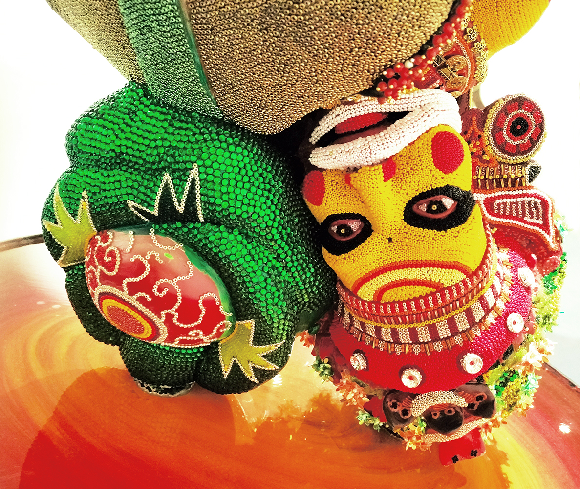 Geboren in Kerala, Indien Seine künstlerische Imagination reflektiert eine Verschmelzung von Ost und West in Tradition, Mythologie, Religion, Poesie, Literatur und Textilkunst. Er bedient sich dabei einer Klebeperlentechnik, die wertvolle Perlenstickereien imitiert und für die Herstellung von Hochzeitskleidern verwendet wird. https://www.instagram.com/rizveamjum/ Born in Kerala, India His artistic imagination reflects a fusion of East and West in tradition, mythology, religion, poetry, literature and textile art. To create his paintings and sculptures, he uses a glue technique for beads that is widely used in the production of wedding dresses and imitates expensive pearl embroidery. Abulla PA ![]()