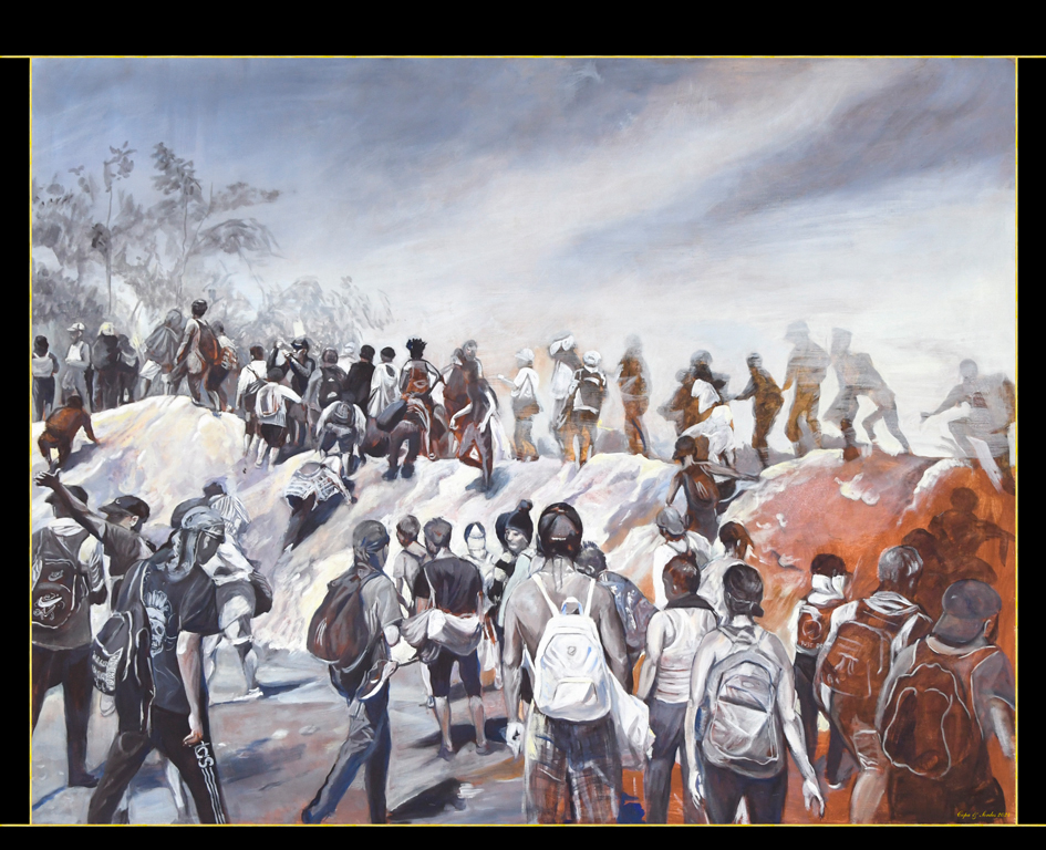 Wuchs in einem Dorf in der Nähe von Kolkata in West Bengalen, Indien auf. Die täglichen Zugfahrten nach Kolkata während seiner Studienzeit prägten seinen Blick auf die Landschaft und ihre Veränderung durch eine zunehmende Urbanisierung und Industrialisierung. Im Spannungsfeld zwischen technischem Fortschritt und Sehnsucht nach der unberührten Natur entstehen grossformatige Kohlezeichnungen von frappanter Tiefenschärfe. Grew up in a village near Kolkata in West Bengal, India. When he was an art student, he had got to Kolkata by train every day, five hours of traveling, which shaped his view to landscape and to its transformation through increasing urbanization and industrialization. Caught between technical progress and a longing for nature, he creates large-format charcoal drawings with striking depth of field. about the exhibition Of Barriers and Distances The exhibition at Wolkenhof is a follow-up and further development of the exhibition ‘Of Barriers and Distances’, which took place at Gallery Dotwalk in 2024. In the summer of 2024, a group of artists based in Switzerland travelled to Delhi to meet five artists from different regions of India. The project was conceived by Parvez, an artist and curator from India who lives in Switzerland. It was hosted by the Dotwalk Ajitara Art Residency and the Gallery Dotwalk. The title of the project ‘of Barriers and Distances’ refers not only to the geographical distance between Europe and the Indian subcontinent, but also to aspects of historical, social, and cultural division and how these can be overcome. The focus was on encounters and exchange - during visits to studios, galleries and exhibition venues in Delhi and in many conversations around the large dining table at the Dotwalk Ajitara Art Residency. In times when the illusion of unlimited mobility is shattered by the reality of multiple crises, the importance of exchange across borders and distances is increasing. The exhibition at Wolkenhof continues the dialogue between artists from two continents that began in 2024 and makes their current works and themes visible. All of the artists who were involved in ‘Of Barriers and Distances’ are also represented with works at Wolkenhof. Whether digitally from a distance or physically on site. A tour through the indoor and outdoor areas of the Wolkenhof invites visitors to discover themes of contemporary art in India and Europe. |