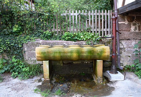 Die Formensprache von Jürg Stäuble ist einer Moderne verpflichtet, die auf geometrischen Konstruktionen beruht, schlicht und humorvoll verspielt zugleich. Entsprechend greift sein Entwurf Form und Dimensionen eines Baumstammes auf, variiert sie aber mit Rundungen und Einbuchtungen, an denen das Wasser über den Brunnenrand rinnen kann. Das Projekt stellt für ihn eine Premiere dar, da zum ersten Mal ein digitales Steinbearbeitungsverfahren zum Einsatz kommt. Seine Bleistiftskizze wurde in eine 3D Datei übertragen. Die Fertigung des Troges aus Sandstein erfolgte mittels Roboter durch die Firma Schubert in Dresden. Zur Brunneneinweihung findet im zum Kunstfenster gehörenden Atelierraum eine Ausstellung statt. Neben den Entwürfen und einer Videodokumentation des Produktionsprozesses werden weitere Arbeiten von Jürg Stäuble gezeigt. Im hinteren Teil des Raumes gibt es zudem Videoaufnahmen vom Brunnen aus den letzten 24 Jahren zu sehen. ![]() ![]() ![]() ![]() ![]() ![]() ![]() ![]() ![]() ![]()
