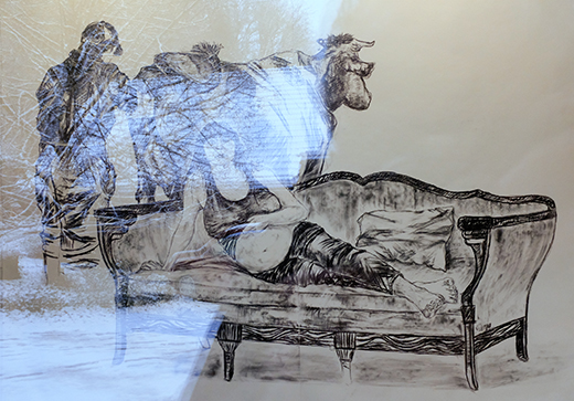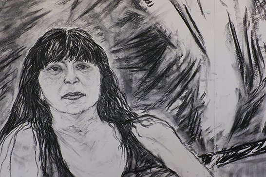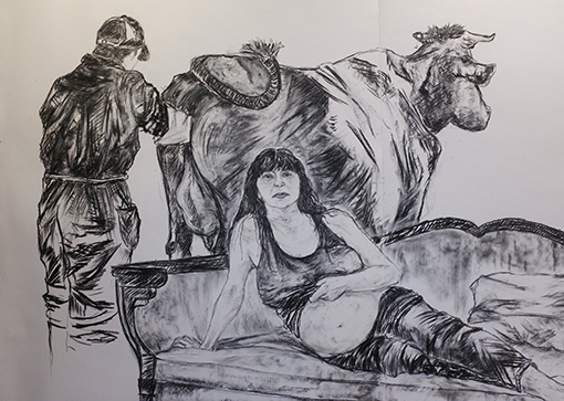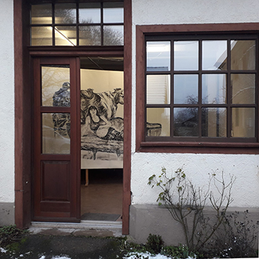 Ana Vujic M/Other 9. 1. bis 4. 3. 2022 Öffnungszeiten: Das Kunstfenster ist durchgehend zugänglich Kunst und Alltag sind für Ana Vujic nicht trennbar. Seit Jahren realisiert sie grossformatige Zeichnungen mit Kohle oder Tusche, welche sich um die sich ständig wandelnden Lebensbedingungen des Menschen drehen. Sie thematisieren Situationen des Umbruchs, die Fragilität des gesellschaftlichen Konstrukts und hinterfragen unsere Rolle als Individuum. Dabei bedient sich Ana Vujic einer figürlichen, vordergründig leicht zugänglichen Darstellungsweise. Doch es ist weniger ein Nachzeichnen realer, bereits gesehener Bilder. Vielmehr öffnet sie den Blick auf innere Bildwelten, die durch eine inhaltliche Abstraktion auch von gegensätzlichen Gefühlswelten erzählen. Mit der Zeichnung „M/Other“, die anlässlich der Ausstellung im Kunstfenster entsteht, rückt Ana Vujic die sich anbahnende eigene Mutterschaft in den Fokus. Die Gegenüberstellung einer schwangeren Frau mit der Besamung eines Tieres irritiert und polarisiert. Sie lenkt den Blick auf das Thema in unterschiedliche Richtungen: Einerseits wird dem natürlichen Zyklus ein gesellschaftlich konstruierter Optimierungsprozess gegenübergestellt. Andererseits wird die verherrlichende Darstellung der „weiblichen Natur“ und die damit oft einhergehende Reduzierung der Frau auf diese einzige Rolle kritisch hinterfragt. Ana Vujic *1981 in Serbien, lebt und arbeitet in BaselAna Vujic kam in jungen Jahren mit der Graffiti- und Streetartszene in Berührung, die ihre Faszination für künstlerische Eingriffe im öffentlichen Raum weckte. Als Autodidaktin konnte sie ihre grossformatigen Zeichnungen bereits an zahlreichen internationalen Ausstellungen unter anderem in Japan, Bulgarien, Schweden und Mexiko zeigen. Aufgewachsen in Serbien hat sie Kunstgeschichte, Medienwissenschaften und Pädagogik an der Universität Basel studiert. Zurzeit absolviert sie den MAS Studiengang Curating an der Zürcher Hochschule der Künste. Seit 2017 betreibt sie als Kuratorin in Basel den Ausstellungsraum Voltage. Sie engagiert sich für das Basler Offspace Netzwerk SUMME und ist als Kunstvermittlerin im Schaulager und in den Bildschulen K‘Werk Basel / Zürich (Schule für Gestaltung) tätig. www.anavujic.ch www.voltage-basel.com/ about the exhibition Art and everyday life are not separable for Ana Vujic. For years she has been creating large-format drawings with charcoal or ink, which revolve around the constantly changing conditions of human life. They address situations of transition, the fragility of the social construct and question our role as individuals. Ana Vujic uses a figurative, superficially easily accessible mode of representation. But it is not so much a tracing of real, already seen images. Rather, she opens the view to an internal imaginary with its ambiguous and contradictory feelings. With the drawing "M/Other", created on the occasion of this exhibition, Ana Vujic brings her own approaching motherhood into focus. The juxtaposition of a pregnant woman with the insemination of an animal irritates and polarizes. It directs the view of the subject in different directions: On the one hand, the natural cycle is juxtaposed with a socially constructed process of optimization. On the other hand, the glorifying portrayal of "female nature" and the reduction of women to motherhood is critically questioned. Ana Vujic *1981 in Serbia, lives and works in Basel. Ana Vujic came into contact with the graffiti and street art scene at a young age, which awakened her fascination for artistic interventions in public spaces. As a self-taught artist, she shows her large-scale drawings at numerous international exhibitions, including shows in Japan, Bulgaria, Sweden and Mexico. Raised in Serbia, she studied art history, media studies and education at the University of Basel. She is currently completing the MAS Curating program at the Zurich University of the Arts. Since 2017, she has been running the exhibition space Voltage, as a curator in Basel. She is involved with the Basel Offspace Network SUMME and works as an art educator at Schaulager and at the Bildschulen K'Werk Basel / Zurich (School of Design). www.anavujic.ch www.voltage-basel.com/ |