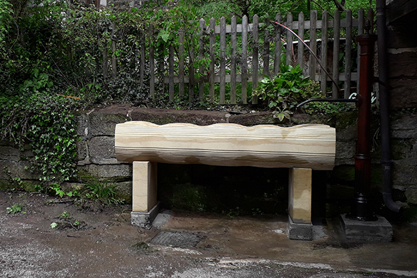 Jürg Stäuble www.juergstaeuble.ch *1948 in Wohlen, Schweiz, lebt seit 1970 in Basel und ist als freischaffender Künstler tätig. Sein künstlerischer Schwerpunkt liegt im dreidimensionalen Bereich. Während vieler Jahre war er Leiter der Bildhauerfachklasse der Schule für Gestaltung Basel und bis 2011 Professor am Institut Kunst der Hochschule für Gestaltung und Kunst Basel. Konstruktive und geometrische Spielregeln und Methoden dienen ihm zur Entwicklung von Arbeiten, welche zwischen analytischer, Rationalität und subjektiver, assoziativer Wahrnehmung oszillieren. Mit zahlreichen Kunst am Bau Projekten hat er sich einen Namen gemacht. Jürg Stäuble New Fountain for the Wolkenhof The new fountain sculpture was designed by artist Jürg Stäuble and digitally produced. It sets a contemporary accent, while referring to the formal language of the old wooden fountain, which characterized the image of Wolkenhof. The Wolkenhof fountain is a magic place. For many people passing by the yard, it is impossible to imagine it without its continuous babbling. It seems as if it has always been there. In 1893, after a severe drought, the painter Heinrich von Zügel acquired the spring to ensure the water supply for the Wolkenhof. The preserved cast-iron well column is a testimony of this era. The fountains's shape, with a tree trunk resting on two stone pedestals, from which the water drips and overflows, dates back to the beginning of the 1980s. At that period, the fountain quickly developed into a public place with diverse social interactions. Passers-by enjoy the site, children play with water, dogs drink, people from the neighborhood place colorful watering cans to catch the trickles for their garden watering. And in winter, fantastic sculptures grow out of ice. Jürg Stäuble's formal language is committed to a modernism based on geometric constructions, simple and humorously playful at the same time. His design takes up the shape and dimensions of a tree trunk but varies them with curves and indentations that allow the water to run over the edge of the trough. The project represents a premiere for him, as it is the first time a digital stone carving process has been used. His pencil sketch was transferred to a 3D file. The sandstone trough was manufactured by the Schubert company in Dresden using a robot. On the occasion of the fountain's inauguration, an exhibition will take place in the studio room belonging to the art window. In addition to the drafts and a video documentation showing the production process, further works by Jürg Stäuble are on display. In the back of the room there is also video footage of the last 24 years showing the fountain. Jürg Stäuble www.juergstaeuble.ch *1948 in Wohlen, Switzerland, has lived in Basel since 1970 and works as a freelance artist. His artistic focus is in the three-dimensional field. For many years he was head of the sculpture class at the Basel School of Design and until 2011 professor at the Institute of Art at the Basel School of Art and Design. Constructive and geometric rules and methods serve him to develop works that oscillate between analytical, rationality and subjective, associative perception. |