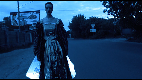 The video “Responsibility” shows a distressing process of innermost growth. A girl walks down a murkily lit street in ridiculous getup consisting of smeared makeup and an exuberant dress. In her hand, she holds cheap white plastic bags with products from the grocery store that she exits at the beginning of the video before starting her journey. These ugly and awkward rags that she wears distort and misrepresent her. She keeps walking, fighting her shame. The bags symbolize the scantness of the means, material or otherwise, at her disposal. They contain her goals, wishes, and dreams, and are somewhat heavy for her to carry. With great effort, she takes them with her into uncertainty. There’s no one waiting for her up ahead. She keeps walking on her own, overcoming her fears. (Dr. Walter Seidl)