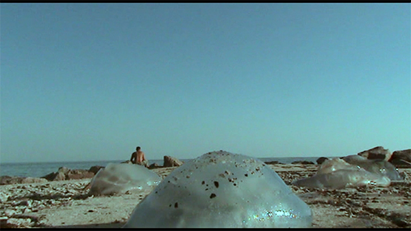 Diese, an einer Küste des Schwarzen Meeres gedrehte Videoarbeit, zeigt einen statischen Horizont, der mit den Figuren von Fischern übersät ist. Die ruhige Oberfläche des Bildes wird in regelmäßigen Abständen von Szenen mit Quallen unterbrochen, die auf dem Boden spritzen. Die wichtigste Assoziation ist das Geräusch von Bombenabwürfen, das mit Aufnahmen von Frequenzen eines Düsenflugzeugs erzeugt wird. Das Video vermittelt die Unbeständigkeit und Relativität der Ruhe, wie schnell und leicht militärische Aggressionen in der modernen Welt eskalieren können. Diese Arbeit entstand als Reaktion auf den Konflikt zwischen Georgien, Abchasien und Russland, der 6 Jahre vor dem Einmarsch in die Ukraine und der Annexion der Krim stattfand.