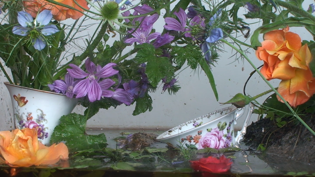 Mit fixer Kamera-Einstellung und in Echtzeit kreiert das Künstlerduo Copa & Sordes (Birgit Krueger und Eric Schmutz) sogenannte Videotableaux. Sie untersuchen dabei Aspekte der Zeitlichkeit und des Dokumentarischen in einem definierten Bildausschnitt. Die statischen Aufnahmen von Blumenarrangements zitieren die Genre- und Stilllebenmalerei des 17. und 18. Jahrhunderts. Zunächst erscheinen sie auf den ersten Blick unbewegt. Beim genaueren Hinsehen lassen sich zwischen antikem Porzellan und echtem Schmuck kleine Frösche entdecken, die der Arbeit Leben einhauchen. Die Genre- und Stilllebenmalerei erlebt durch die von Copa & Sordes geschaffenen Videotableaux eine Neuerfindung. Durch das bewegte Bild und den Ton ist nicht mehr nur eine Momentaufnahme möglich, sondern ein immersiver Einblick in eine eigene, in sich geschlossene Welt. With a static camera and no cuts, the video series Frogs and Animals by the artist duo Copa & Sordes, comprising of Birgit Krueger and Eric Schmutz, consists of “video-tableaux”. They examine aspects of temporality and the documentary in a defined image section. The static shots of flower arrangements are strongly reminiscent of seventeenth- and eighteenth- century genre and still life painting, seeming motionless at first glance. On closer inspection, small frogs can be discovered between antique porcelain and jewellery, breathing life into the work. Genre and still life painting has been reinvented by the video tableaux created by Copa & Sordes. The moving image and sound no longer just provide a snapshot, but an immersive insight into a self-contained world. (Copa & Sordes) Copa & Sordes (Birgit Krueger *1967 München & Eric Schmutz *1962 Zofingen), live in Basel www.copaetsordes.ch Gyonyoung Yoon „Filling in the Physical Reality, Living in Digital Reality“ 2020, 3:12 min Ton, 16:9